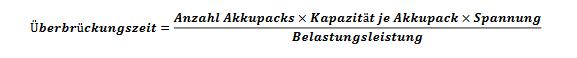 Die Überbrückungszeit wird mit folgender Formel berechnet: